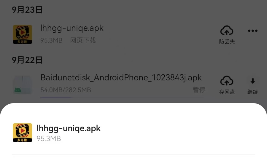“短剧推广员”发来的“多乐剧”App下载链接。该应用并不在主流的应用市场上架。